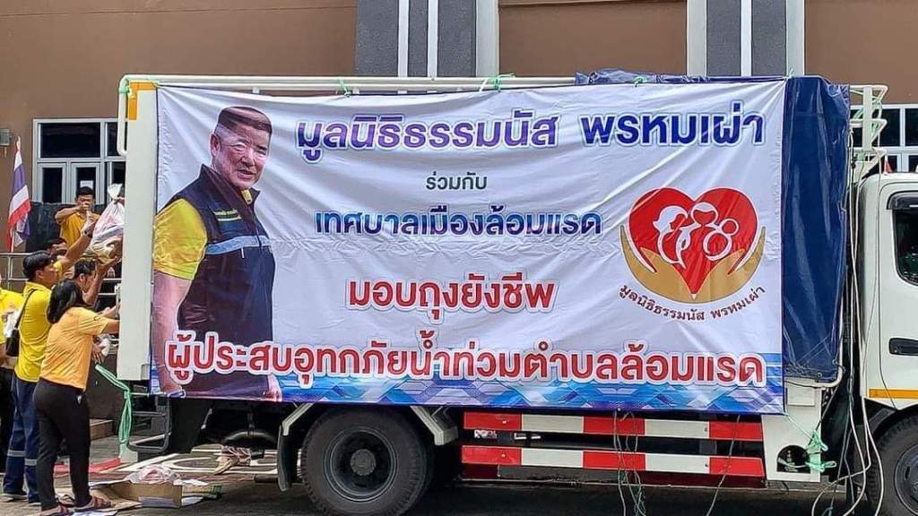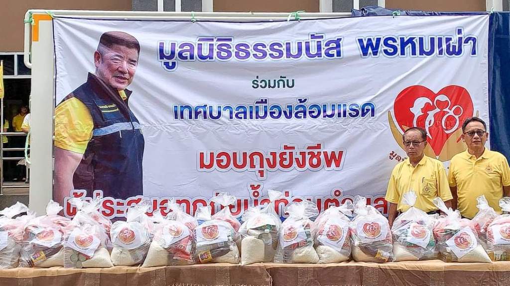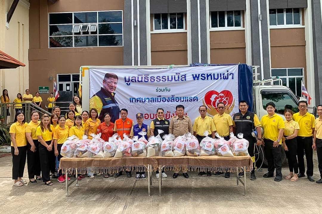 วันที่ 30 กันยายน 2567 เวลา 11.00 น. ณ บริเวณหน้าอาคารสำนักงานเทศบาลเมืองล้อมแรด นายสมศักดิ์ วัชรธาดาพงศ์ นายอำเภอเถิน พร้อมด้วยนางสาวณฐอร ชมภูรัตน์ เลขานุการนายกเทศมนตรีเมืองล้อมแรด(พิเศษ) ผู้แทน นายชยพล ชมภูรัตน์ นายกเทศมนตรีเมืองล้อมแรด ตลอดจน คณะผู้บริหาร หัวหน้าส่วนราชการ พนักงานเจ้าหน้าที่เทศบาลเมืองล้อมแรด ร่วมรับมอบถุงยังชีพเครื่องอุปโภค บริโภค จากมูลนิธิธรรมนัส พรหมเผ่าเพื่อการกุศล