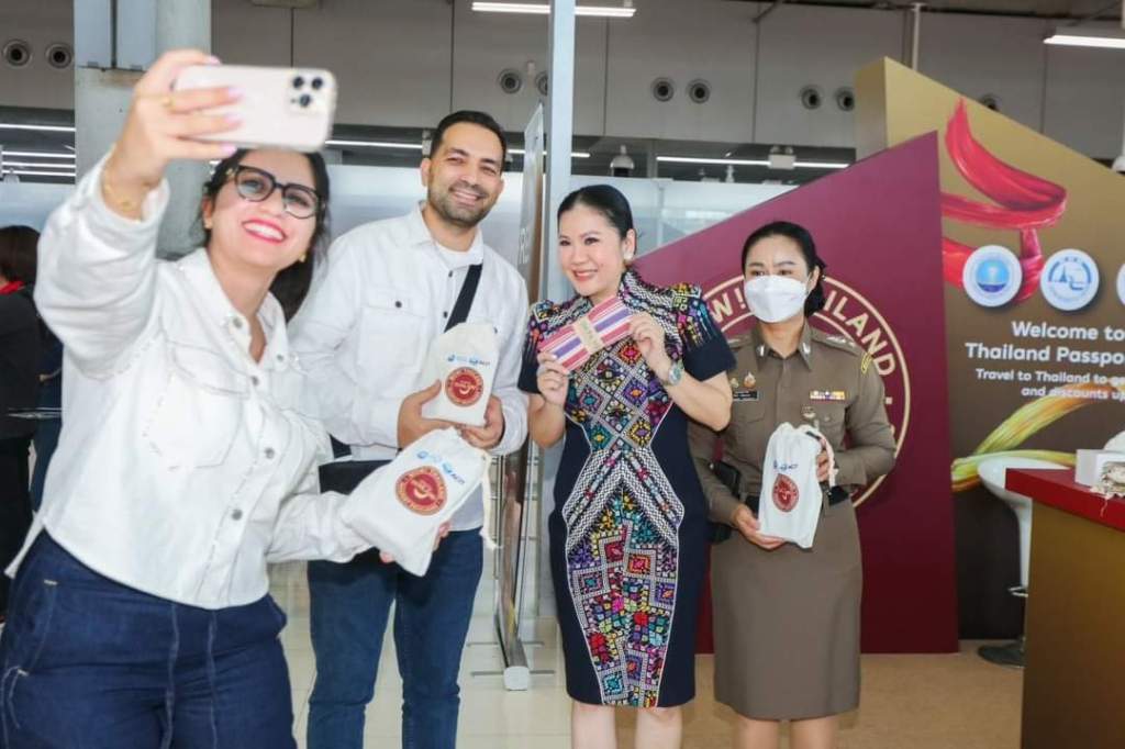 วันที่ 1 พฤศจิกายน 2567 ณ ท่าอากาศยานสุวรรณภูมิ การท่องเที่ยวแห่งประเทศไทย (ททท.) เปิดแคมเปญ “WOW! Thailand Passport Privileges” ภายใต้โครงการ Amazing Thailand Passport Privileges พร้อมมอบส่วนลด สิทธิพิเศษต่าง ๆ สำหรับสินค้าและบริการด้านการท่องเที่ยวแก่นักท่องเที่ยวที่เดินทางเข้าสู่ประเทศไทยในช่วงเดือนพฤศจิกายน – 10 ธันวาคมนี้ โดย นางสาวฐาปนีย์ เกียรติไพบูลย์ ผู้ว่าการ ททท. พร้อมด้วย นางประหนึ่งนุช บำเพ็ญสมัย ผู้อำนวยการฝ่ายบริการลูกค้า ท่าอากาศยานสุวรรณภูมิ พันตำรวจโทรัชนี เฉิดฉาย รองผู้กำกับฝ่าย ตม.ขาเข้า ท่าอากาศยานสุวรรณภูมิ กองบังคับการตรวจคนเข้าเมือง 2 พันตรวจโท ทัศน์ภูมิ ชุติธรพงษ์ รองผู้กำกับฝ่าย ตม. ขาเข้า ท่าอากาศยานสุวรรณภูมิ กองบังคับการตรวจคนเข้าเมือง 2 นายมนาเทศ อันนวัฒน์ ผู้จัดการใหญ่ บริษัท ไทยแลนด์ พริวิเลจ คาร์ด จำกัด ร่วมต้อนรับ และมอบของที่ระลึกเสน่ห์ไทย Must Do Souvenirs แก่นักท่องเที่ยวที่เดินทางเข้าสู่ประเทศไทย