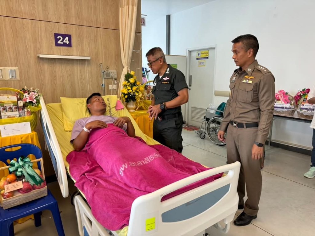 โดยได้เดินทางไปเข้าเยี่ยมให้กำลังใจ และมอบเงินบำรุงขวัญ ตำรวจชุดปฏิบัติการณ์ที่ 446 สังกัด ตชด.กก.44 ที่ได้รับบาดเจ็บจากการปฏิบัติหน้าที่ทั้ง 5 นาย ซึ่งได้มาพักรักษาตัว ณ โรงพยาบาลยะลาสิริรัตนรักษ์ อ.เมือง จว.ยะลา