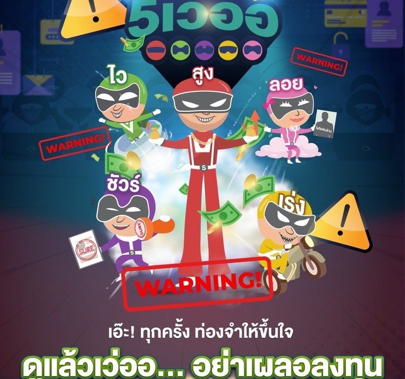 ทั้งนี้ เมื่อปี 2566 ก.ล.ต. ได้ริเริ่มแคมเปญ “ดูแล้วเว่ออ..อย่าเผลอลงทุน” เพื่อสร้างความตระหนักรู้ให้แก่ประชาชน ในวงกว้างเกี่ยวกับสัญญาณอันตราย 5 เว่ออ ได้แก่ (1) สูงเว่ออ อ้างว่าจะให้ผลตอบแทนที่สูงผิดปกติ (2) ไวเว่ออ อ้างว่าจะให้ผลตอบแทนภายในเวลาอันรวดเร็ว (3) ชัวร์เว่ออ การันตีว่าได้ผลตอบแทนสูงอย่างแน่นอน (4) เร่งเว่ออ เสนอสิทธิพิเศษเฉพาะในช่วงเวลานั้น เพื่อเร่งให้รีบตัดสินใจ และ (5) ลอยเว่ออ แอบอ้างผู้บริหารของหน่วยงานภาครัฐ คนมีชื่อเสียง โดยมียอดผู้เข้าถึงสื่อ 52.7 ล้านครั้ง