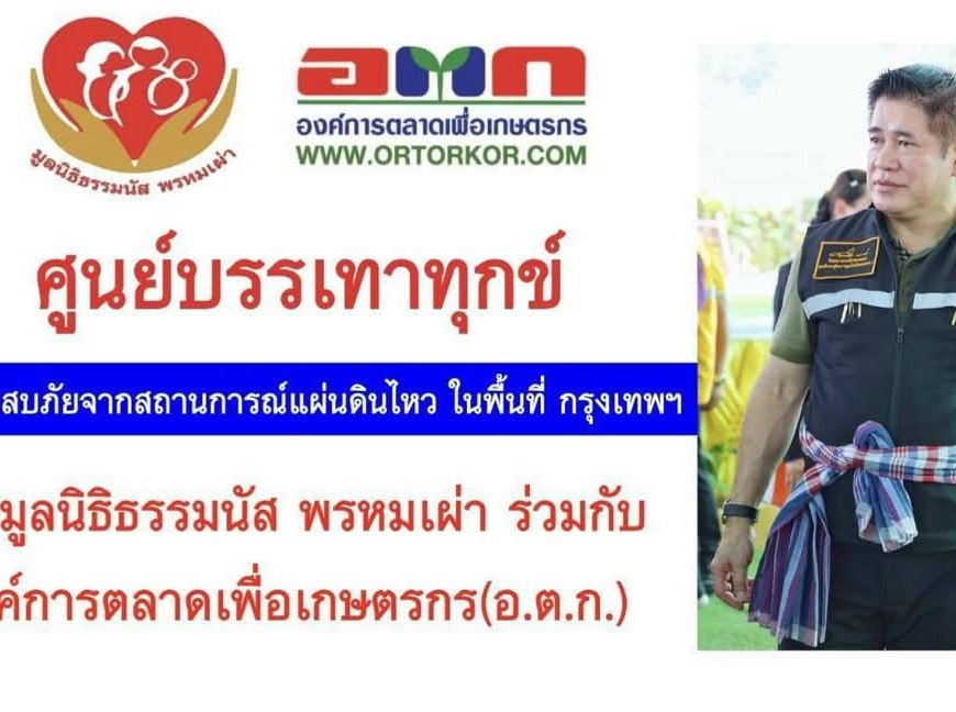 ด่วน ! มูลนิธิธรรมนัสพรหมเผ่า-อ.ต.ก.ตั้งศูนย์บรรเทาทุกข์ เพื่อช่วยผู้ประสบภัยจากสถานการณ์แผ่นดินไหว ในพื้นที่ กรุงเทพฯ