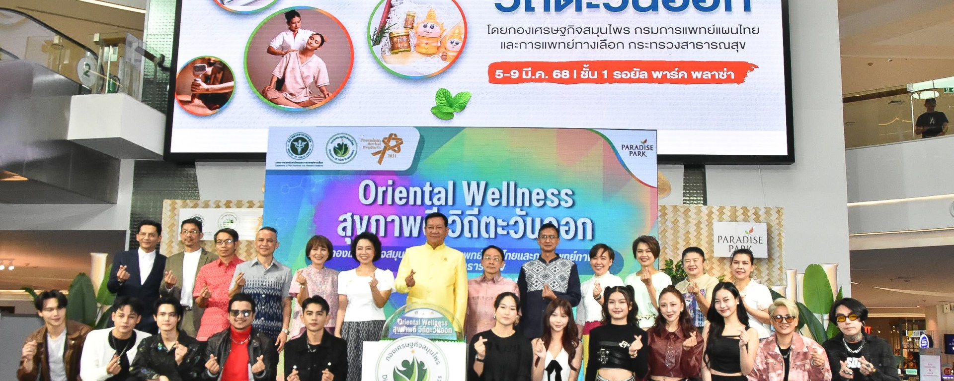 จากความอุดมสมบูรณ์และความหลากหลายทางชีวภาพของพืช ทำให้ประเทศไทยสามารถผลิตผลิตภัณฑ์สมุนไพรออกมาอย่างมากมายและหลากหลายรูปแบบ ทั้ง อาหาร เครื่องดื่ม ยาสมุนไพร อาหารเสริม เครื่องสำอาง และ เพื่อเป็นการขยายช่องทางการตลาดผลิตภัณฑ์สมุนไพร กองเศรษฐกิจสมุนไพร กรมการแพทย์แผนไทยและการแพทย์ทางเลือก กระทรวงสาธารณสุข ร่วมกับ ศูนย์การค้าพาราไดซ์ พาร์ค จัดงาน “Oriental Wellness สุขภาพดี วิถีตะวันออก” ขึ้น ณ รอยัล พาร์ค พลาซ่า ชั้น 1 ศูนย์การค้าพาราไดซ์ พาร์ค กทม.