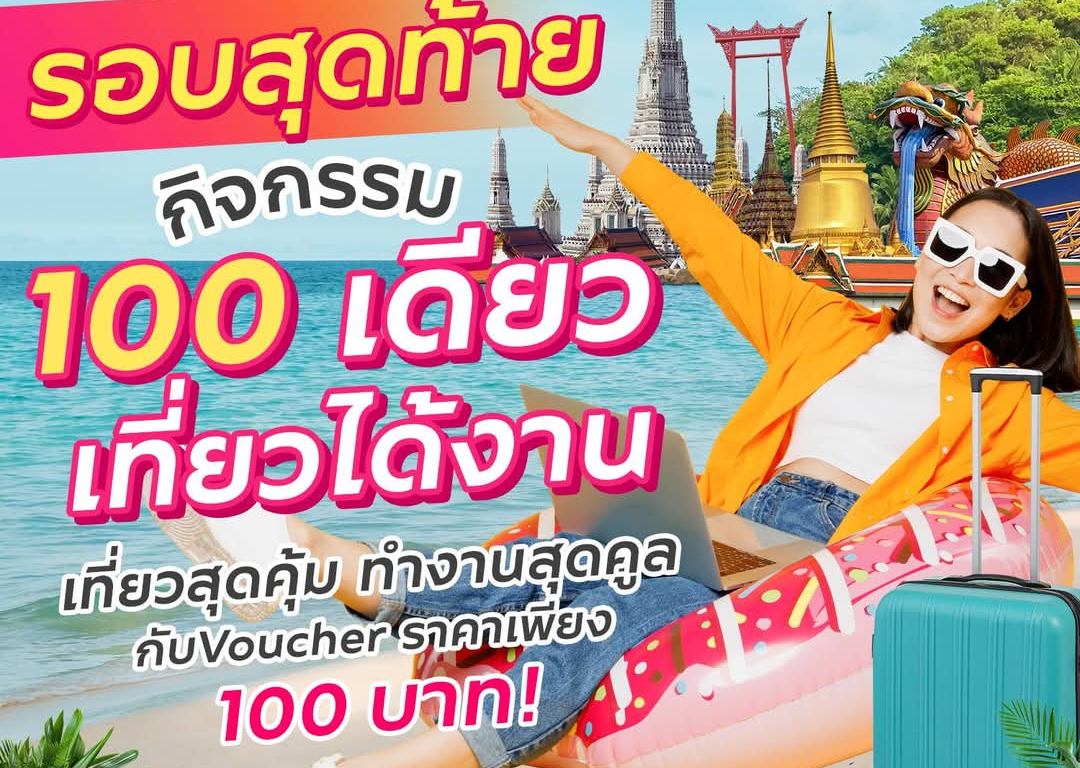 รอบสุดท้าย !! กับกิจกรรมส่งเสริมการขาย “100 เดียวเที่ยวได้งาน” ซึ่งเป็นกิจกรรมที่นำเสนอสินค้าและบริการด้านการท่องเที่ยวในราคาเพียง 100 บาท เพื่อส่งเสริมการตลาดและกระตุ้นให้เกิดการเดินทางท่องเที่ยวภายในประเทศในวันธรรมดา อีกทั้งยังเป็นการสร้างรายได้ให้กับผู้ประกอบการในอุตสาหกรรมท่องเที่ยว และในรอบสุดท้ายนี้จะเปิดให้นักท่องเที่ยวเข้าร่วมกิจกรรมได้ในวันที่ 20 มีนาคม 2568 และสามารถเลือกซื้อ Voucher ได้ตั้งแต่เวลา 10.00 น. เป็นต้นไป (หรือจนกว่าสินค้าจะหมด) First Come First Serve มาก่อน เลือกก่อน ได้ก่อน ผ่านเว็บไซต์ http://www.tourismthailand.org/workationthailand ซึ่งมีบัตรกำนัล (Voucher) สินค้าและบริการด้านการท่องเที่ยวที่นำเสนอขายมากมาย หลากหลายประเภท เช่น ประเภทโรงแรมที่พัก อาทิ การยา ท้องทราย เบย์ สมุย ครอส ริเวอร์แคว รีสอร์ท ศิลป์ บูทีค โฮเทล วาลา ชะอำ – นู แชปเตอร์ โฮเทล อลีนตา หัวหิน – ปราณบุรี แชปเตอร์ โฮเทล ป่าทำมา ไฮด์อเวย์ รีสอร์ท เซนศาลา ริเวอร์พาร์ค รีสอร์ท พลูแมนเขาหลัก รีสอร์ท และคาทิลิยาเมาท์เทนรีสอร์ทแอนด์สปา ประเภทกิจกรรมท่องเที่ยวและแพ็กเกจท่องเที่ยว อาทิ วานา นาวา วอเตอร์ จังเกิ้ล พิพิธภัณฑ์ ริบลีส์ เชื่อหรือไม่ และโอเอซิสสปา เป็นต้น ทั้งนี้ยังมี บัตรกำนัล (Voucher) สินค้าและบริการด้านการท่องเที่ยวจากสถานประกอบการชั้นนำที่เข้าร่วมกิจกรรมอีกมากมายให้นักท่องเที่ยวได้เลือกซื้อ