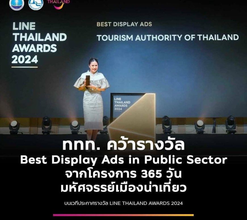 ททท. คว้ารางวัล Best Display Ads in Public Sector จากโครงการ 365 วัน มหัศจรรย์เมืองน่าเที่ยว บนเวทีประกาศรางวัล LINE THAILAND AWARDS 2024