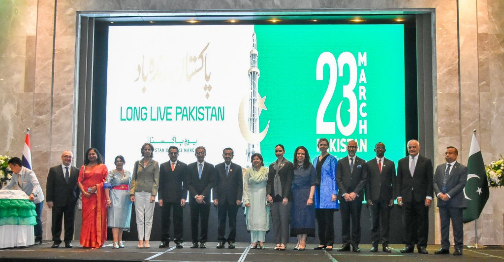 เมื่อค่ำวันที่ 24 เมษายน ที่ผ่านมา ณ ห้องวอเตอร์เกท บอลรูม โรงแรมอมารี วอเตอร์เกท กรุงเทพฯ สถานเอกอัครราชทูตปากีสถานประจำประเทศไทย จัดงานเฉลิมฉลอง วันชาติปากีสถาน ครบรอบ 85 ปี อย่างยิ่งใหญ่และอบอุ่น