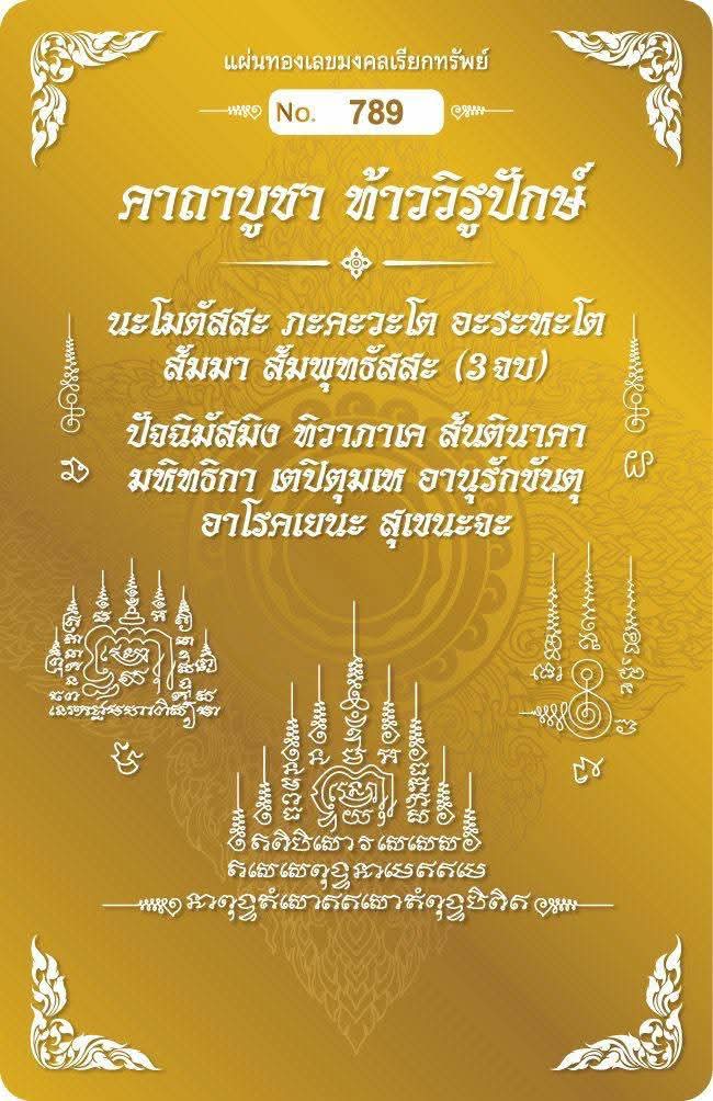 “แผ่นทองรุ่นนี้ไม่ใช่ทองจริง แต่เป็นการ์ดพลังงานบวกที่เราตั้งใจทำอย่างมาก ด้วยศรัทธาและความเมตตาของท้าววิรูปักษ์ อยากให้ทุกคนได้มีไว้ติดตัว เหมือนพกพลังงานดีไว้กับตัวเองตลอดเวลา”