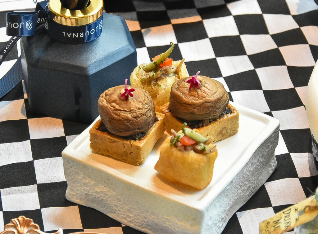 ความร่วมมือในครั้งพิเศษ ที่ร้อยเรียงรสชาติและกลิ่นหอมเข้าด้วยกันอย่างมีศิลป์ ทุกเมนูของชุดน้ำชานี้ได้รับการสร้างสรรค์ขึ้นอย่างพิถีพิถัน โดยมีแรงบันดาลใจจากตัวละครและฉากในเรื่อง Alice in Wonderland พร้อมเชื่อมโยงเข้ากับกลิ่นหอมซิกเนเจอร์ 3 กลิ่นจาก Journal ที่จะทำให้ทุกสัมผัสของแขกเต็มไปด้วยความหอมรัญจวนและเรื่องเล่าเหนือจินตนาการ
