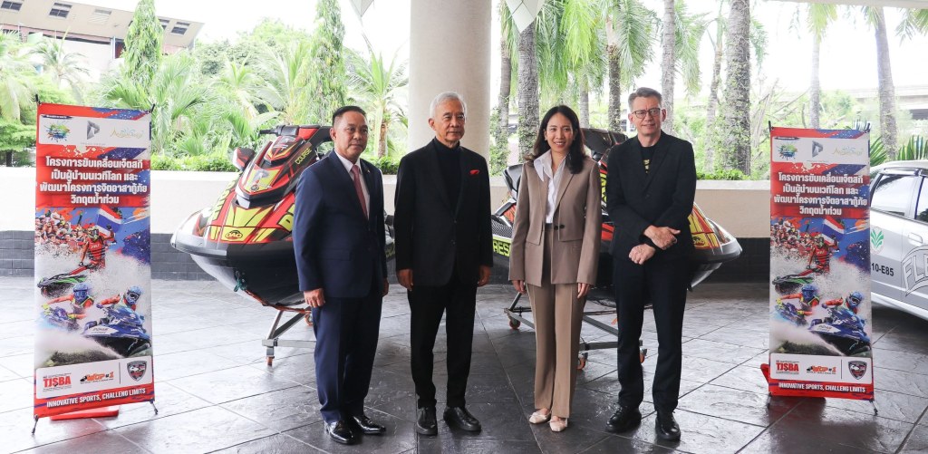 กีฬาเจ็ตสกีไทย เดินหน้างาน ต่อยอดศักยภาพ “แบรนด์ทัวร์นาเม้นท์กีฬาไทยชนิดแรก ที่ขึ้นเป็นผู้นำประเทศสมาชิกทั่วโลก 55 ชาติ” โดยนายสุวัจน์ ลิปตพัลลภ อดีตรองนายกรัฐมนตรี ประธานที่ปรึกษา ชื่นชมวิสัยทัศน์ “บิ๊กเปี๊ยก” พล.ต.อ.เดชณรงค์ สุทธิชาญบัญชา นายกสมาคมกีฬาเจ็ตสกีฯ ที่มุ่งสร้างประโยชน์ชาติและสังคม ทะลุขีดจำกัดแค่คำว่าชัยชนะกีฬา ลุยทำโครงการจิตอาสา เข้าช่วยพี่น้องประชาชนในวิกฤติน้ำท่วมอย่างน่าชื่นชม โดยได้รับการสนับสนุนหลักจากกลุ่มบริษัทพราว โดย สวนน้ำวานานาวาหัวหิน และสวนน้ำอันดามันดาภูเก็ต ลงนามในบันทึกข้อตกลงความร่วมมือ (MOU) ตามโครงการอาสากู้ภัยและดูแลสิ่งแวดล้อมทางน้ำ เพื่อช่วยเหลือผู้ประสบอุทกภัยและส่งเสริมกิจกรรมรักษาปกป้องทรัพยากรน้ำให้สามารถใช้ประโยชน์ได้อย่างยั่งยืน โดยร่วมสนับสนุนด้านเรือกู้ภัย ค่าน้ำมันเชื้อเพลิงเพื่อกู้ภัยน้ำท่วม รวมถึงอุปกรณ์ช่วยเหลือทางน้ำ ต่อยอดทีมเจ็ตสกีจิตอาสาให้บรรลุเป้าหมายอย่างมีประสิทธิภาพ พร้อมเป็นเครื่องมือหลักสนับสนุนรัฐบาล หน่วยงานราชการ รวมทั้งภาคเอกชน ในยามที่บ้านเมือง ประชาชนเดือดร้อน ต้องการความช่วยเหลือ