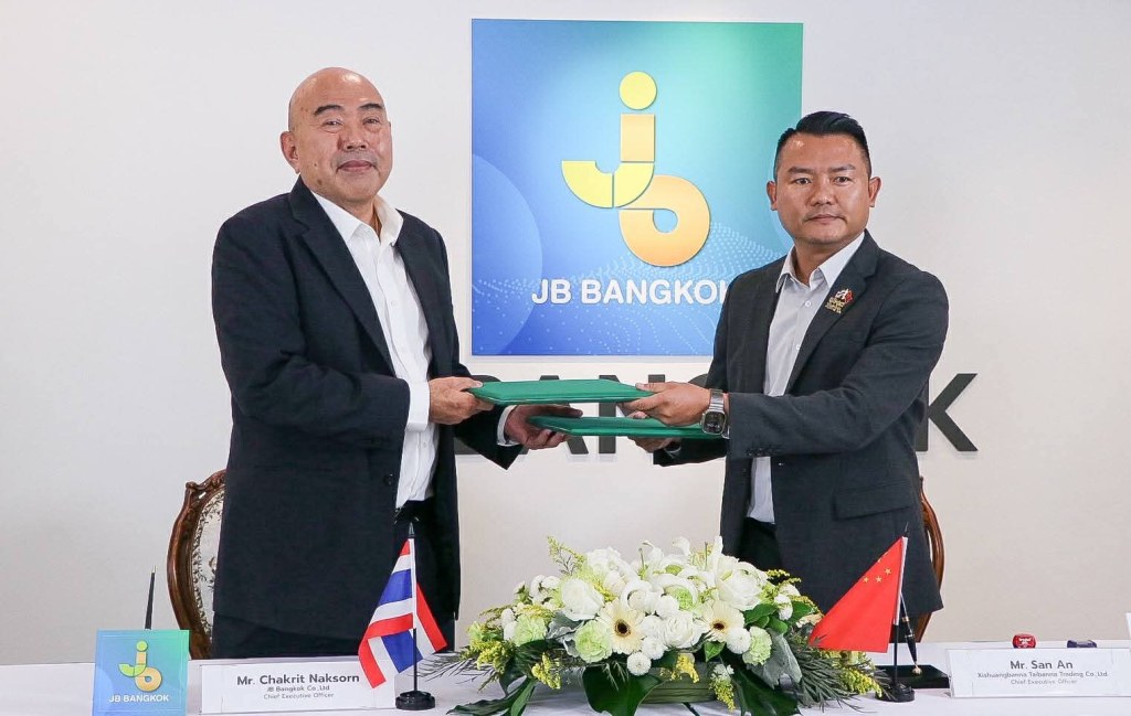 เมื่อวันที่ 29 พฤษภาคม 2568 คุณชาคริต นักสอน ประธานบริหาร กลุ่มบริษัท เจ บี (JB Group) ร่วมลงนามในพิธีเซ็นเอ็มโอยู (MOU) ระหว่าง บริษัท JB Bangkok กับ คุณอันซาน กรรมการผู้จัดการ บริษัท Xishuangbanna Taibanna จำกัด ผู้นำเข้าสินค้ารายใหญ่จากประเทศจีน ณ ห้องประชุมบริษัท JB Bangkok โดยมีคณะผู้บริหารของทั้งสองฝ่ายร่วมเป็นสักขีพยานและแสดงความยินดีในความร่วมมือเป็นคู่ค้า นำสินค้าไทยไปจำหน่ายประเทศจีนตอนใต้ นำร่องในพื้นที่สิบสองปันนา