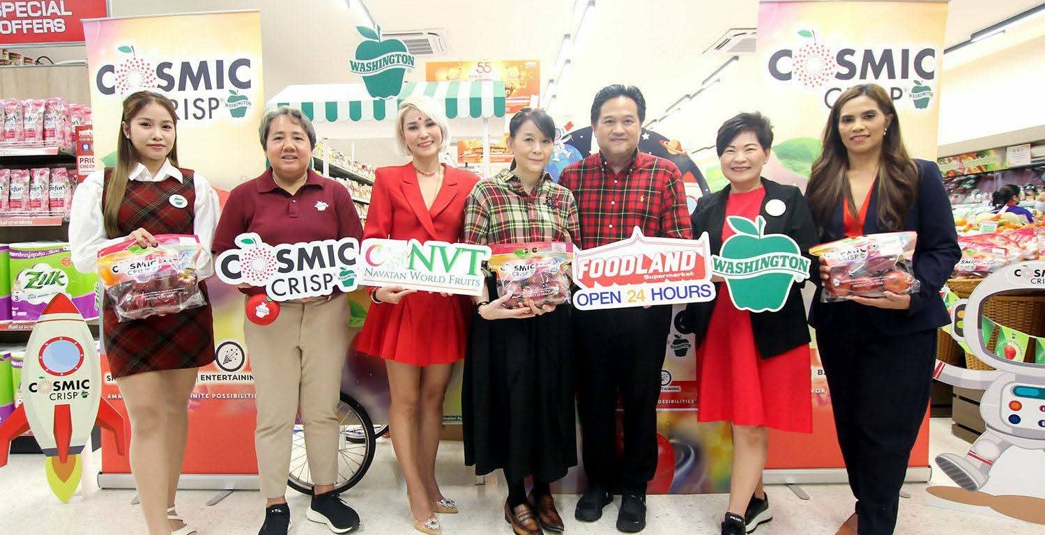 คุณธีรวี อังกุวรกุล, ตัวแทนจาก Washington Apple Commission ประเทศไทย กล่าวว่า “Cosmic Crisp® แอปเปิลสายพันธุ์ใหม่จากรัฐวอชิงตัน สหรัฐอเมริกา คิดค้นโดยมหาวิทยาลัยวอชิงตันนานกว่า 20 ปี โดดเด่นไม่เหมือนใครไม่เปลี่ยนสีแม้หั่นทิ้งไว้ ยิ่งเก็บยิ่งหวาน ถูกใจสายเปรี้ยวและหวาน เหมาะกับคนรักสุขภาพและไลฟ์สไตล์คนเมืองที่ต้องการผลไม้ที่ “ดีจริง” และ “กินแล้วรู้สึกดี” ฟู้ดแลนด์ร่วมกับนวธันเวิร์ดฟรุ๊ต จำหน่ายตลอดทั้งปี ทุกสาขาใกล้บ้าน ใกล้ที่ทำงาน 24 ชั่วโมง ไม่มีวันหยุด”