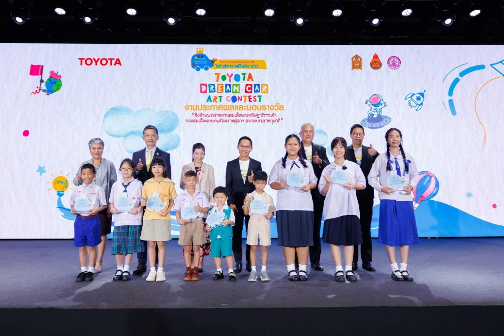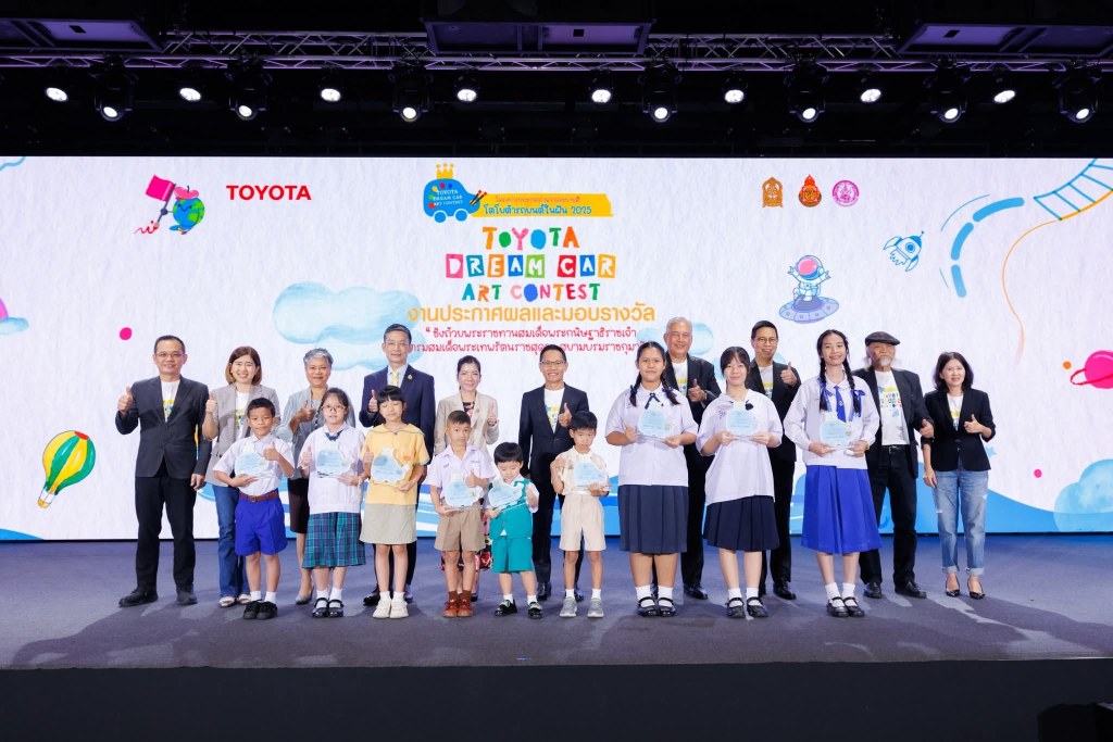 นายศุภกร รัตนวราหะ รองกรรมการผู้จัดการใหญ่ บริษัท โตโยต้า มอเตอร์ ประเทศไทย จำกัด พร้อมด้วย นางสาวพิมพ์พร ชีวานันท์ เลขานุการรัฐมนตรีว่าการกระทรวงศึกษาธิการ และนายสุรยุทธ ทวีกุลวัฒน์ ที่ปรึกษารัฐมนตรีว่าการกระทรวงการพัฒนาสังคมและความมั่นคงของมนุษย์ ร่วมกันมอบรางวัลแก่ผู้ชนะการประกวดภาพวาดระบายสีในโครงการ “โตโยต้า รถยนต์ในฝัน” “TOYOTA Dream Car Art Contest 2025” เมื่อวันที่ 10 มิถุนายน 2568 ณ TOYOTA ALIVE ถ.บางนา-ตราด กม. 3