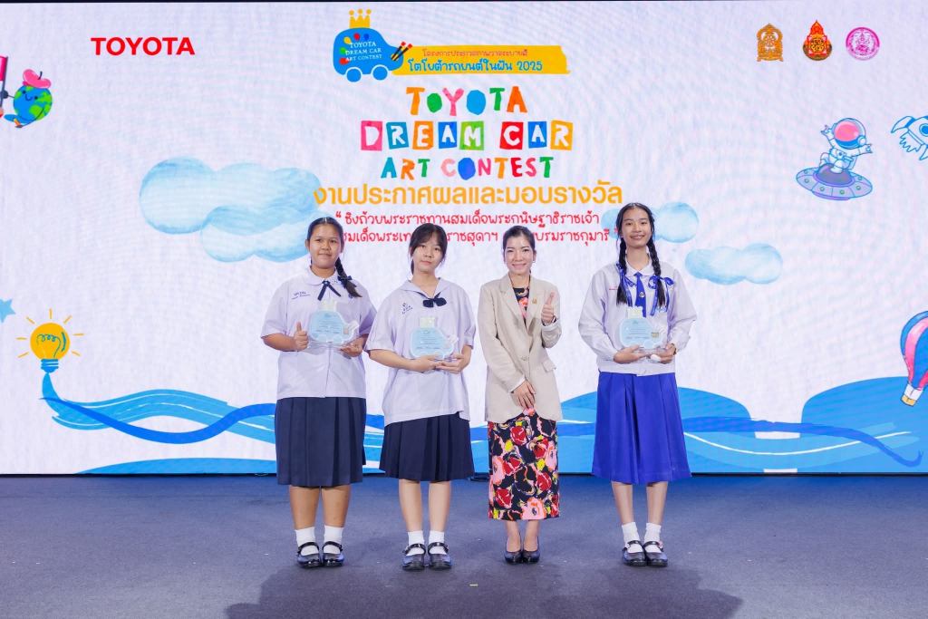 และนับเป็นพระมหากรุณาธิคุณเป็นล้นพ้นอันหาที่สุดมิได้แก่โครงการฯ และเยาวชนไทย ที่ได้รับพระราชทานพระวโรกาสจาก สมเด็จพระกนิษฐาธิราชเจ้า กรมสมเด็จพระเทพรัตนราชสุดาฯ สยามบรมราชกุมารี ทรงพระราชทานถ้วยรางวัลแก่ผู้ชนะการประกวด TOYOTA Dream Car Art Contest 2025 ในระดับประเทศ สำหรับเยาวชนที่ได้รับรางวัลยอดเยี่ยมอันดับ 1 ของทั้ง 3 รุ่น ในส่วนของทางโครงการฯ จะมอบทุนการศึกษา พร้อมโล่ประกาศเกียรติคุณ ให้แก่เยาวชนที่ได้รับรางวัลชนะเลิศ รองชนะเลิศอันดับที่ 1 และรองชนะเลิศอันดับที่ 2 และมอบประกาศนียบัตรพร้อมทุนการศึกษา เป็นรางวัลชมเชย อีก 7 รางวัล ในทุกรุ่นการแข่งขัน รวม 30 รางวัล