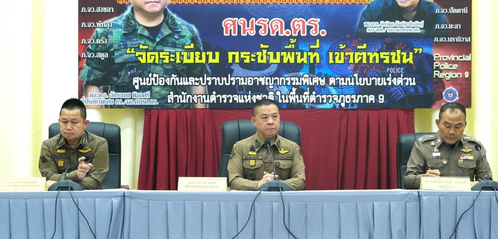 เดินทางมาร่วมปฏิบัติการ “จัดระเบียบ กระชับพื้นที่ เข้าตีทรชน” เพื่อกวาดล้างแก๊งอาชญากรรม และปราบปรามอิทธิพลเถื่อน ยาเสพติดและความผิดอื่นที่เกี่ยวข้อง ในพื้นที่ ภ.9 ห้วงวันที่ 14-16 มิ.ย.68 โดยมี พล.ต.ท.ปิยะวัฒน์ เฉลิมศรี ผบช.ภ.9, พล.ต.ต.อาชาน จันทร์ศิริ รอง ผบช.ภ.9, พล.ต.ต.วรา เวชชาภินันท์ รอง ผบช.ภ.9, พล.ต.ต.เชาวลิต เลี้ยงสุพงศ์ ผบก.ภ.จว.พัทลุง พร้อมด้วย รอง ผบก.ภ.จว.ในสังกัด ภ.9 (รับผิดชอบงานสืบสวนสอบสวน) ,รอง ผบก.สส.ภ.9 , รอง ผบก.สส.จชต. ที่รับผิดชอบศูนย์ ศนรด.บก./ภ.จว. ผกก.สส. ในสังกัด บก.สส.ภ.9 และข้าราชการตำรวจในสังกัด ภ.9 เข้าร่วมปฏิบัติการ