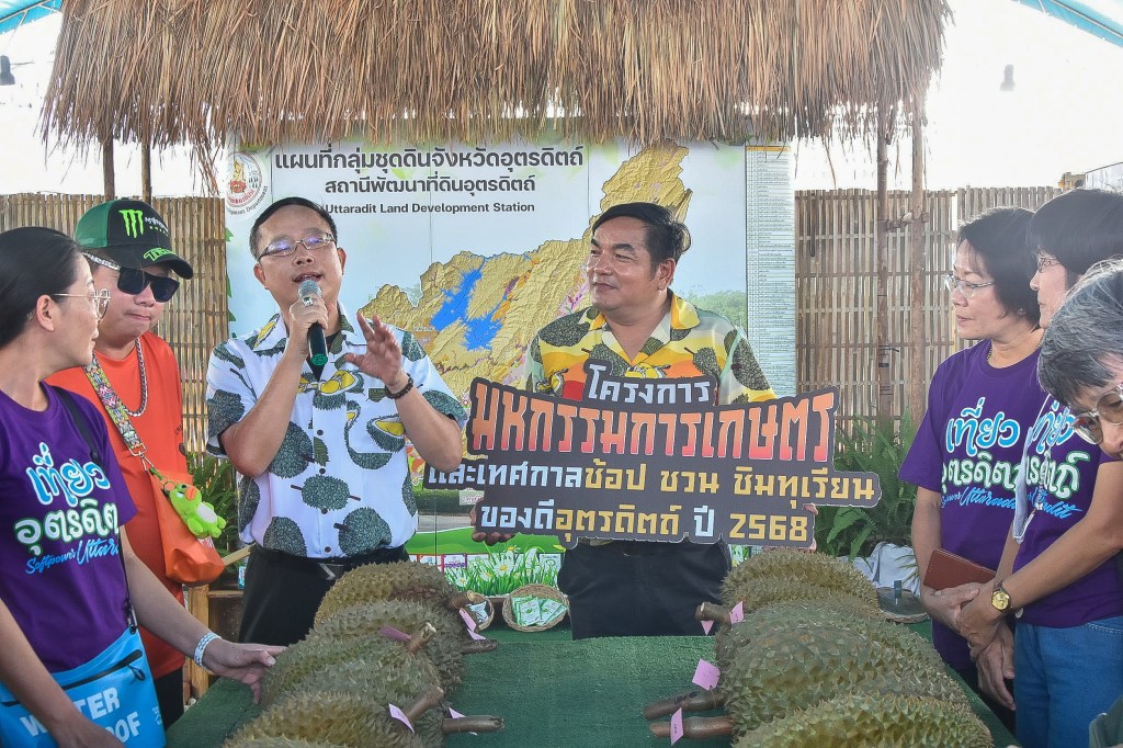 กิจกรรรมวันที่สอง (21 มิ.ย. 68) ช่วงเช้า คณะคาราวานรถยนต์ท่องเที่ยว เดินทางไปที่ “มูลนิธิพุทธภาวนาธรรม ไหว้องค์พระโพธิสัตว์กวนอิม และสักการะเทพเจ้าสิ่งศักดิ์สิทธิ์ เสริมสิริมงคลชีวิต,ไปชุมชนท่องเที่ยวปางต้นผึ้ง ต.ด่านนาขาม เที่ยวชมสถานีรถไฟปางต้นผึ้ง สะพานรถไฟกลับหัว ต้นผึ้งร้อยปี อุโมงค์น้ำลอด อุโมงค์รถไฟปางตูบขอบ , กลางวัน เที่ยวชม สวนทุเรียนรังสฤษฏ์ เพื่อรับประทานอาหาร ลิ้มรส ทุเรียน หลิน หลง และทุเรียนสายพันธ์ต่างๆ อ.ลับแล อย่างเพลิดเพลิน ด้วยบริการที่เป็นกันเองจากเกษตรกรเจ้าของสวน สร้างความประทับใจให้นักท่องเที่ยวเป็นอย่างมาก จากนั้นคณะคาราวานได้เดินทางเข้าเยี่ยมชมงานมหัศจรรย์ทุเรียน เมืองพระยาพิชัย ณ สนามกีฬาพระยาพิชัยดาบหัก ซึ่งภายในงานมีกิจกรรมประกวดทุเรียนยักษ์ ที่มีน้ำหนักมากที่สุด ลูกละ 9.3 กิโลกรัมด้วย ตอกย้ำถึงการส่งเสริมผลิตทุเรียนในจังหวัดอย่างมีประสิทธิภาพ และปิดท้ายในวันที่สอง ด้วยกิจกรรมงานเลี้ยงต้อนรับคณะนักท่อง โดยมี นายสันติ ป่าหวาย หัวหน้าผู้ตรวจราชการกระทรวงการท่องเที่ยวและกีฬา ให้เกียรติเป็นประธาน ซึ่งบรรยากาศเต็มไปด้วยความสนุกสานเป็นกันเอง ก่อนจะพักผ่อนตามอัธยาศัย