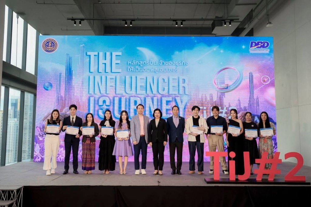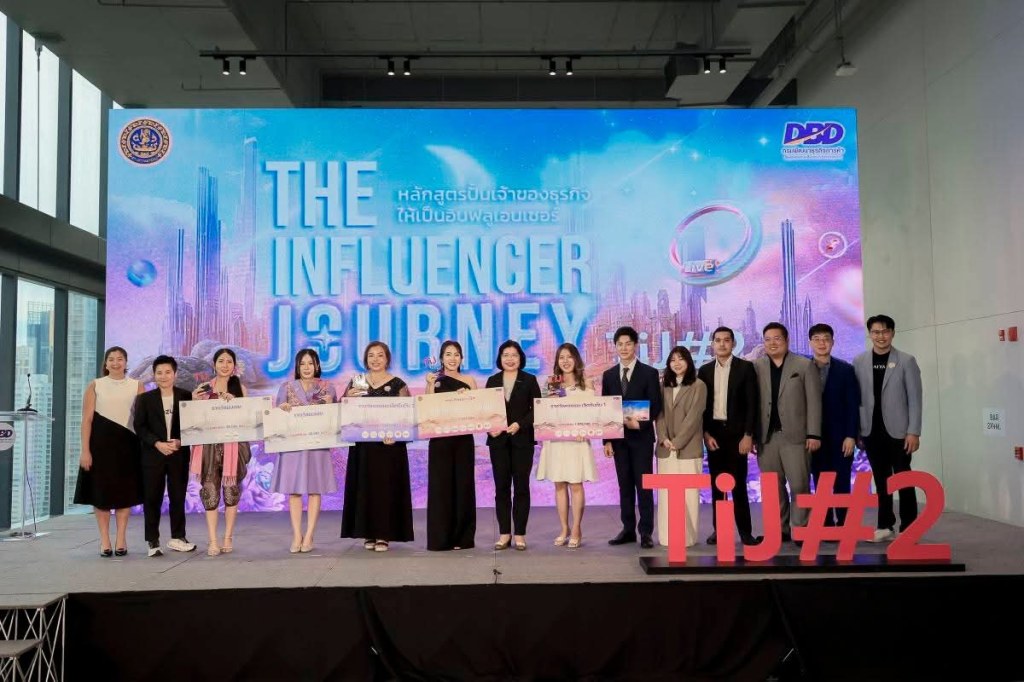 กรมพัฒนาธุรกิจการค้า มอบรางวัล DBD Influencer Award และ Privilege Card จำนวน 5 รางวัล พร้อมรางวัลพิเศษจากแพลตฟอร์มพันธมิตรชั้นนำ รวมมูลค่ากว่า 6 ล้านบาท แก่ผู้ประกอบการออนไลน์รุ่นใหม่ไฟแรงในกิจกรรมปั้นเจ้าของธุรกิจให้เป็นอินฟลูเอนเซอร์รุ่นที่ 2 (: TiJ#2) ให้พร้อมก้าวสู่การเป็น CEO Influencer รุ่นใหม่ของไทย ที่ใช้พลังของ “ตัวตน” และ “กลยุทธ์ดิจิทัล” สร้างผลลัพธ์ทางธุรกิจได้จริง! ผ่าน “มหกรรม Live Marathon” 60 วัน ที่สร้างยอดขายเฉียด 500 ล้านบาท