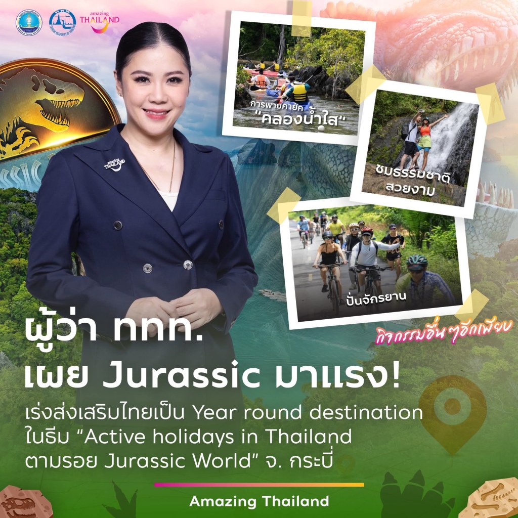 ด้านสินค้าและธุรกิจท่องเที่ยว ร่วมกับด้านตลาดต่างประเทศฯ ระยะไกล / ระยะใกล้ นำคณะ Influencer, Journalist และ Travel Agent จากยุโรป อเมริกา จีน และอินเดีย รวมทั้งผู้แทนจาก กองตลาดอเมริกา และ กองตลาดเอเชีย ออกเดินทางสู่เส้นทาง Active Holidays ด้วยกิจกรรม soft adventure พายคายัค ปั่นจักรยาน Hiking กับ Trekking เดินศึกษาธรรมชาติ ตามรอยสถานที่ถ่ายทำภาพยนตร์ฟอร์มยักษ์ Jurassic World: Rebirth ในช่วง Green Season เพื่อให้ผู้ร่วมทริปได้สัมผัสเสน่ห์ของธรรมชาติ และความอุดมสมบูรณ์แหล่งท่องเที่ยวต่าง ๆ ผ่านกิจกรรมเช่น การพายคายัค “คลองน้ำใส“ ซึ่งเป็นฉากสำคัญในภาพยนตร์ พายคายัคสัมผัสบรรยากาศราวกับหลุดเข้าไปในโลกดึกดำบรรพ์
