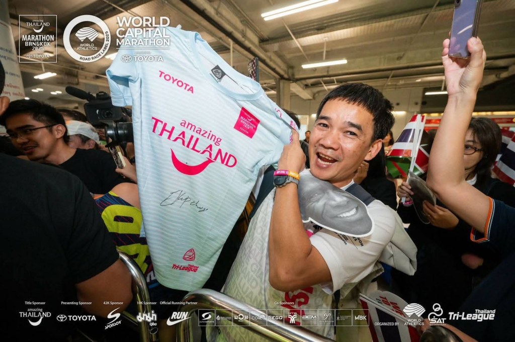 โดย มร.คิปโชเก้ เป็นเจ้าของสถิติวิ่งมาราธอนเร็วที่สุดในโลกด้วยเวลา 1.59.40 ชั่วโมง และเป็นแชมป์มาราธอนเมเจอร์โลก 11 รายการ เจ้าของเหรียญทองโอลิมปิก 2 สมัย และรายการมาราธอนชั้นนำระดับโลกอีกมากมาย สำหรับการเดินทางมาในวันนี้ เพื่อเข้าร่วมงานวิ่งมาราธอนส่งเสริมการท่องเที่ยวระดับโลก ครั้งที่ 8 รายการ Amazing Thailand Marathon Bangkok 2025 ซึ่งมีกำหนดจัดงานในวันที่ 30 พฤศจิกายน 2568 ณ กรุงเทพมหานคร และเข้าร่วมงาน Expo ของการแข่งขันฯ ระหว่างวันที่ 27-29 พฤศจิกายน 2568