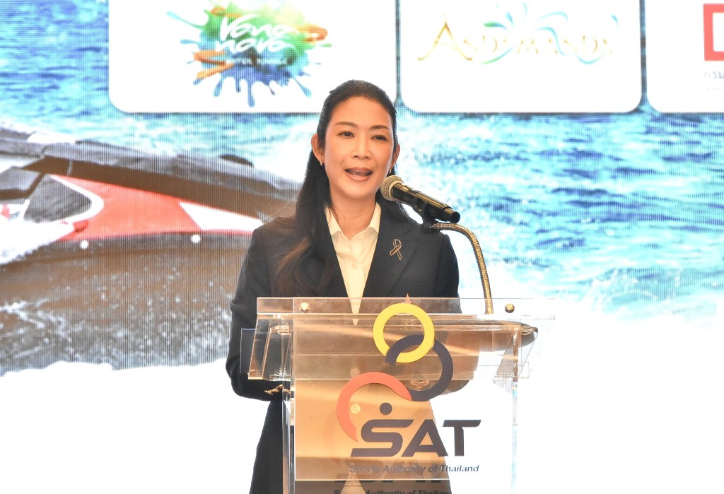 ทัวร์นาเม้นท์กีฬาไทย WGP#1 โชว์ผลงานก้องโลก เปิดมุมมองความสำเร็จ “ทำคอนเทนต์กีฬาโลก ด้วยฝีมือคนไทย”เปลี่ยนปลานีโม่เป็นฉลาม ร้อยเอกธรรมนัส พรหมเผ่า รองนายกรัฐมนตรี และนายอรรถกร ศิริลัทธยากร รัฐมนตรี ว่าการกระทรวงการท่องเที่ยวและกีฬา เน้นให้โครงการนี้เป็นหัวหอกการขยายหัวปีระมิดกีฬาอาชีพไทย ที่เห็นภาพโมโตจีพีแห่งพื้นน้ำ สามารถออกไปปักธงไทย 20 สนามทั่วโลก และมีผู้ชม 400 ล้านคนต่อปีได้ เคล็ดลับใช้กีฬาบวก IP หรือทรัพย์สินทางปัญญา การพาณิชย์-การท่องเที่ยว ซึ่งทัวร์นาเมนท์การบินไทยเจ็ตสกีเวิลด์คัพ 17-21 ธันวาคมนี้ ที่พัทยา มีทีมนานาชาติร่วมแข่งมากสุดในโลก ดันสร้างเงินหมุนเวียนทางเศรษฐกิจกว่า 680 ล้านบาท สอดรับนำทรัพย์สินทางปัญญาด้านกีฬา เป็นจุดเริ่มต้นการสร้างจีดีพีด้านกีฬาชาติที่มั่นคงและเติบโตได้อีกมากในหลายทิศทาง