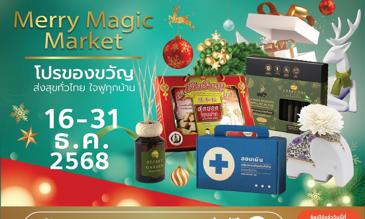 พช. ชวนช้อปโอทอปออนไลน์ “Merry Magic Market – โปรของขวัญ ส่งสุขทั่วไทย ใจฟูทุกบ้าน” มหกรรมส่งความสุขตลอดเดือนธันวาคม 2568